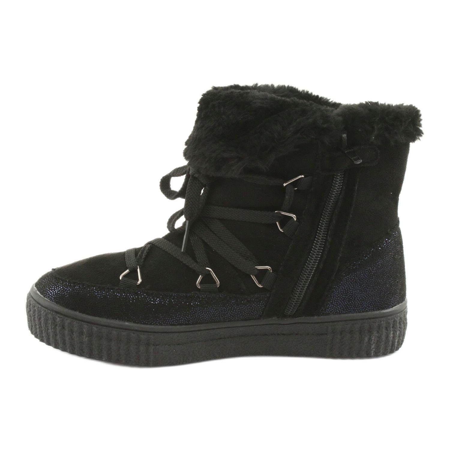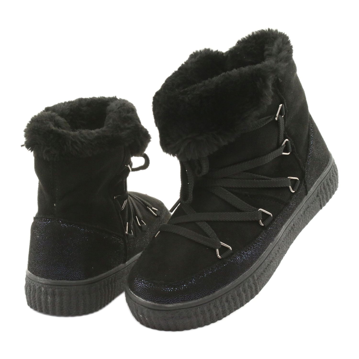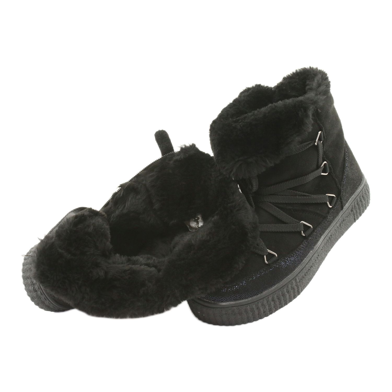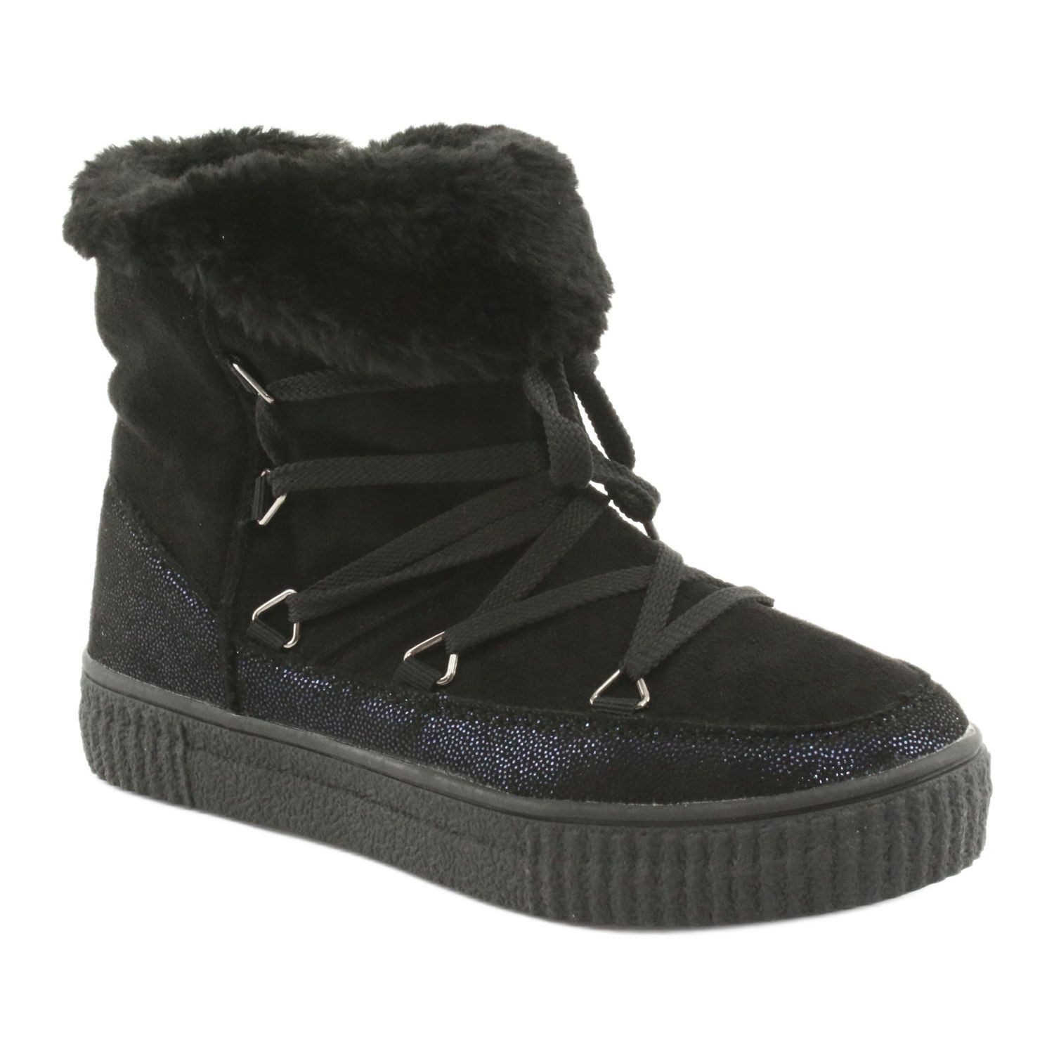 Moderne und praktische Schneestiefel American Club ES48 ist ein ideales Angebot für Mädchen, die eine Kombination aus Stil und Komfort schätzen. Das Modell in klassischem Schwarz mit einem subtilen, schimmernden dunkelblauen Akzent passt perfekt zu Winterstilisierungen.