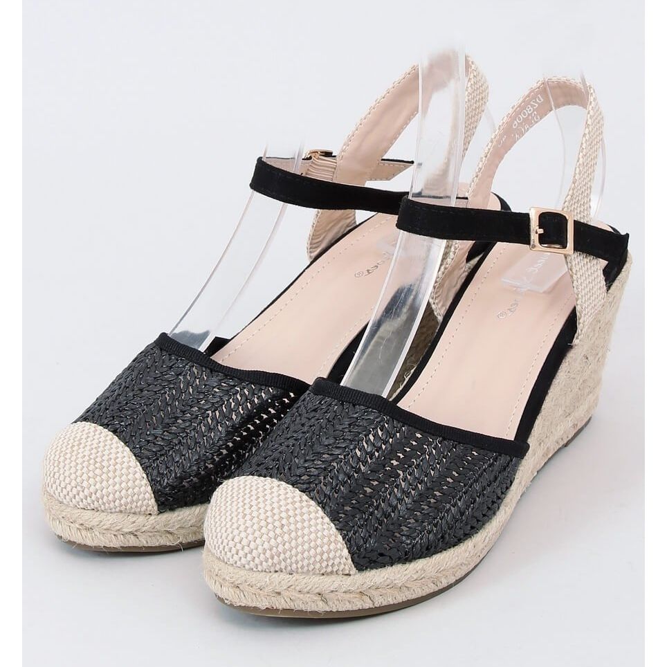 Inna marka Schwarze Espadrilles auf Keilabsatz DZ8006 Schwarz beige
