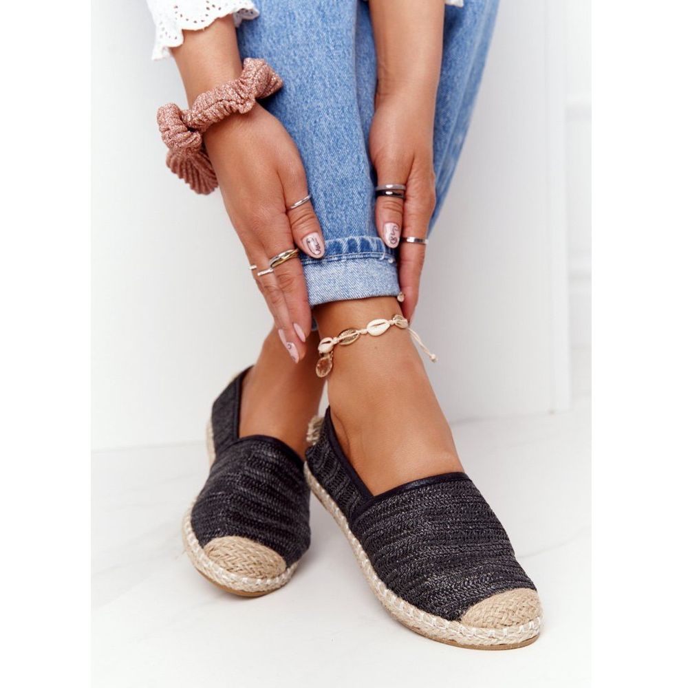 Details: Schwarze Espadrilles auf Strohsohle Lu Boo