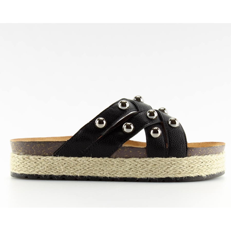 Inna marka Schwarze Espadrilles CK22P schwarze Hausschuhe