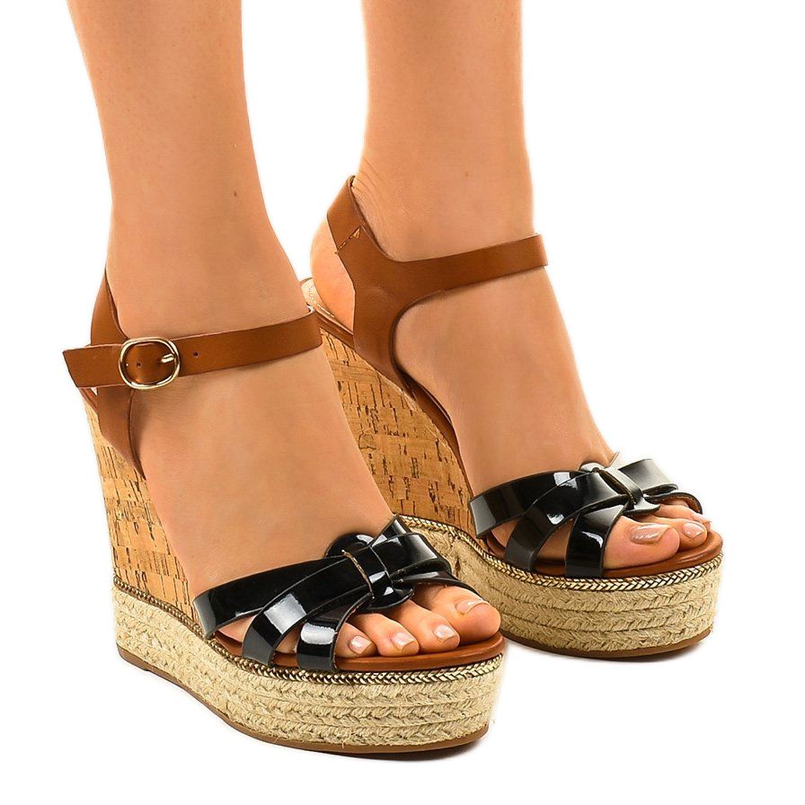 Inna marka Schwarze Espadrilles-Keilsandalen 6032 braun