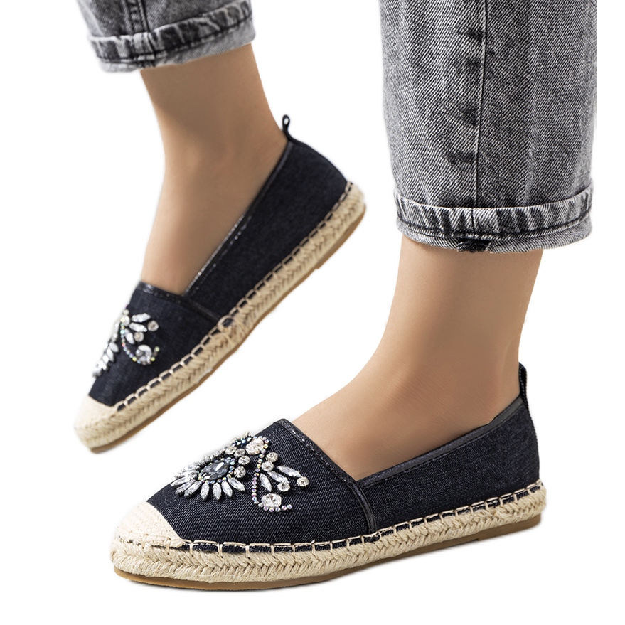 Schwarze Espadrilles mit Block-Zirkonia-Steinen sind die perfekte Wahl für jeden Liebhaber stilvoller Accessoires. Dieses Modell begeistert mit opaleszierenden Zirkonen und Silbersteinen, die ihm einen einzigartigen und eleganten Charakter verleihen. Unabhängig vom Anlass verleihen diese Espadrilles jedem Styling eine glamouröse Note.
