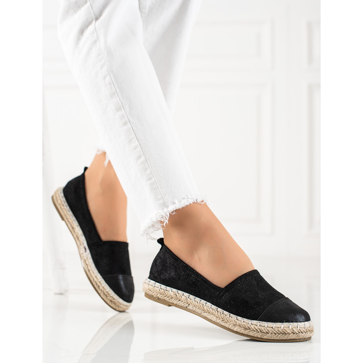 TRENDI Espadrilles sind in der universellen schwarzen Farbe erhältlich, die perfekt in jede Garderobe passt. Ein praktischer Schlupfverschluss macht das Anziehen zum Vergnügen. Diese Schuhe sind Ihr Must-Have für die kommende Saison, die mit Sicherheit Aufmerksamkeit erregen und jeden Tag für mehr Selbstvertrauen sorgen werden.