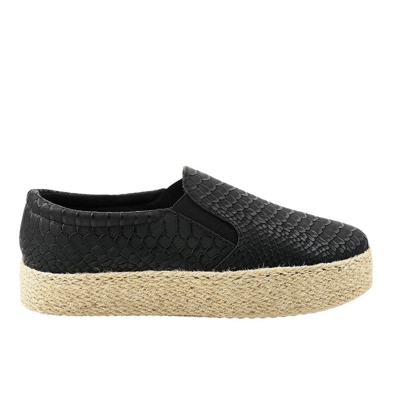 Schwarze Slip-On-Espadrilles 6140 sind die perfekte Lösung für Frauen, die Stil mit Komfort verbinden möchten. Diese modernen Schuhe aus hochwertigem ökologischem Leder zeichnen sich durch ein elegantes, minimalistisches Design aus, das perfekt zu verschiedenen Kombinationen passt.