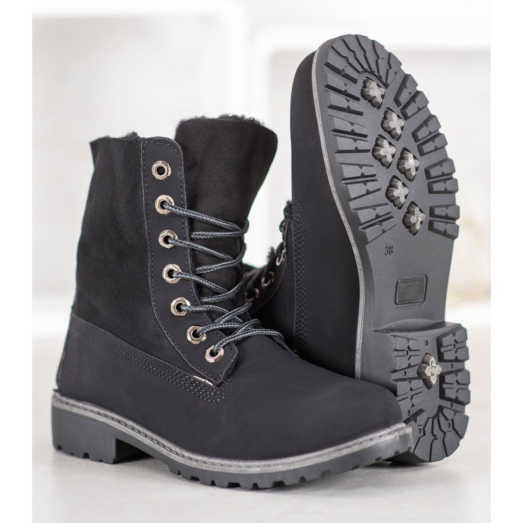 Wir präsentieren schwarze Damen-Wanderstiefel der Marke SHELOVET, perfekt für kältere Tage. Diese stylischen Stiefeletten sind aus hochwertigem ökologischem Leder gefertigt und daher umweltfreundlich. Der isolierte Innenraum garantiert thermischen Komfort, sodass Sie sich auch an Wintertagen wohl fühlen.