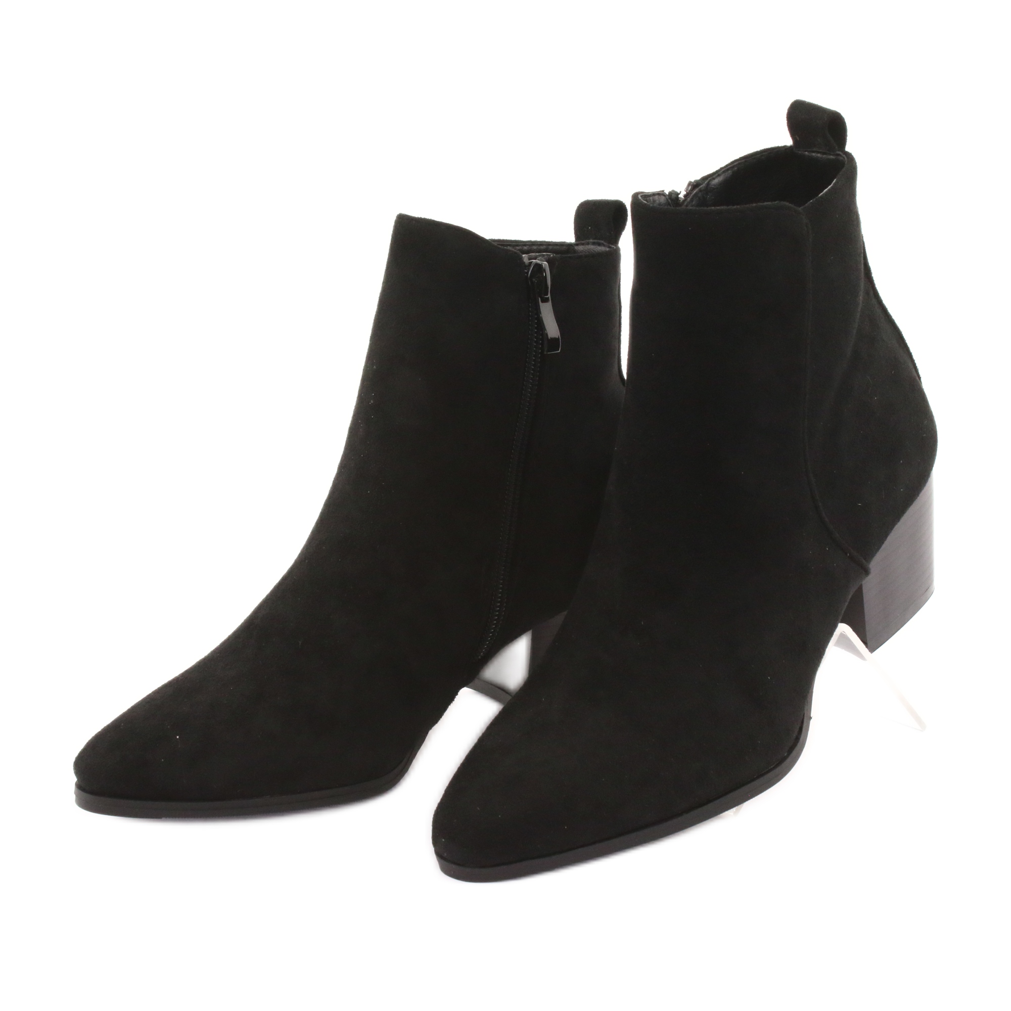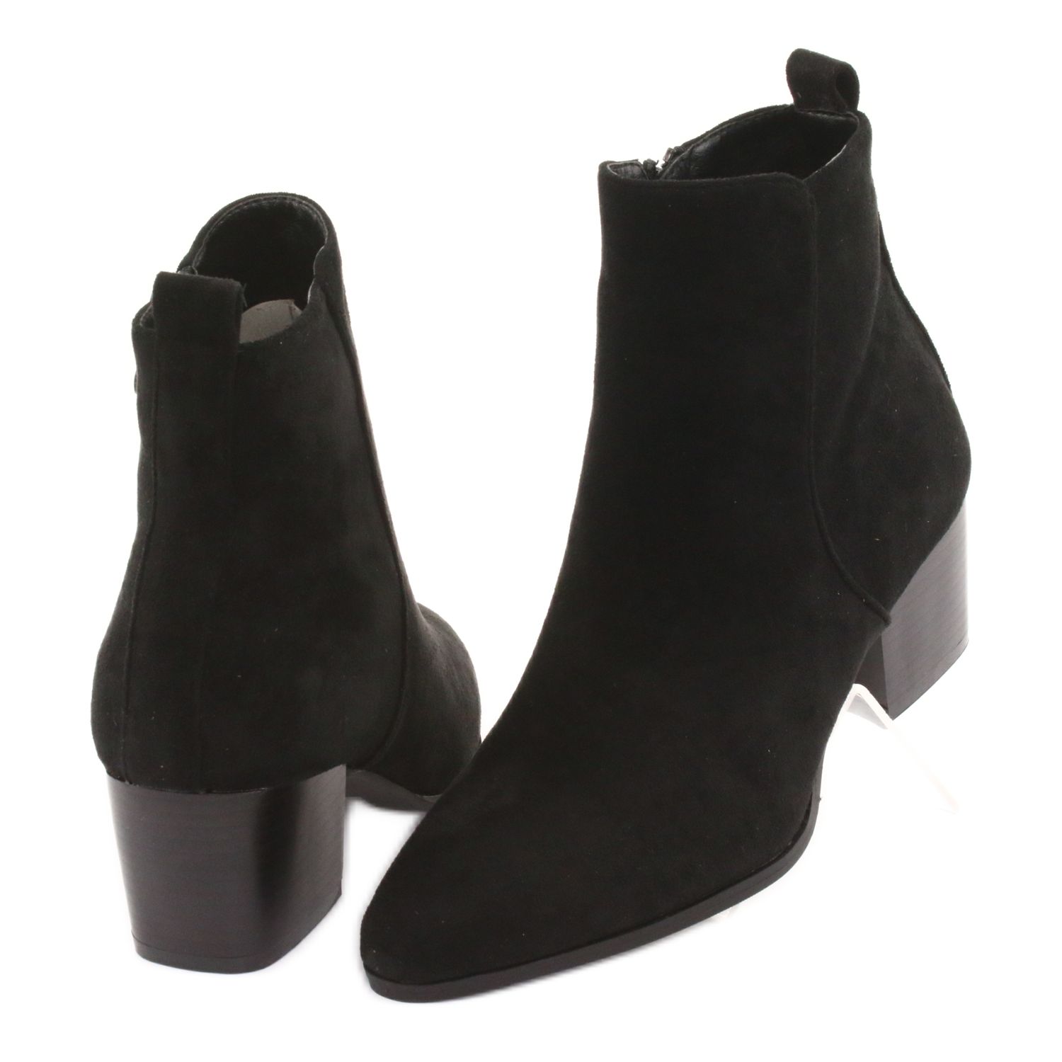 Diese mit weichem Fell isolierten Stiefel eignen sich perfekt für kältere Tage und liegen mit ihrem modischen Design im Einklang mit den neuesten Trends. Die schwarze Farbe und die mandelförmige Spitze machen sie schick, und der solide 5,5 cm hohe Block sorgt dafür, dass sie jeden Tag leicht zu tragen sind.