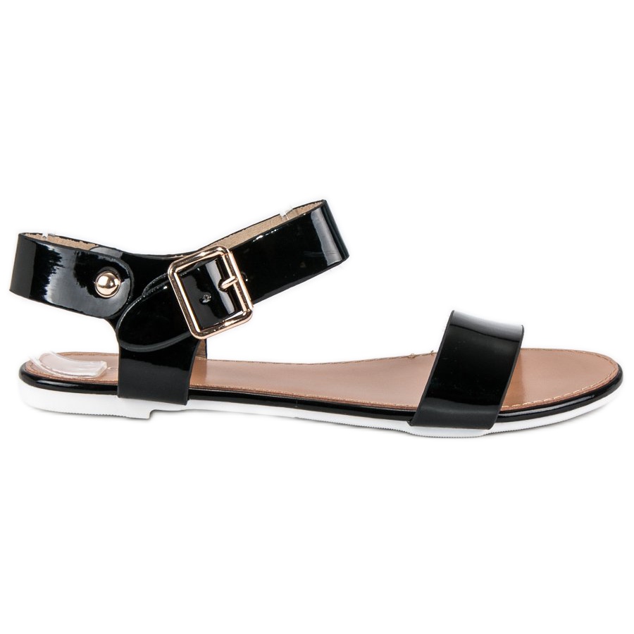 Die schwarzen flachen Sandalen von Vices sind die perfekte Wahl für Sommertage und vereinen Eleganz und Komfort. Aus Lackleder gefertigt, schmiegen sich diese stilvollen Schuhe perfekt an jedes Bein und sehen äußerst eindrucksvoll aus. Der 1,0 cm hohe flache Absatz sorgt für Tragekomfort den ganzen Tag und macht sie zu einer perfekten Wahl sowohl für alltägliche Spaziergänge als auch für elegantere Anlässe.