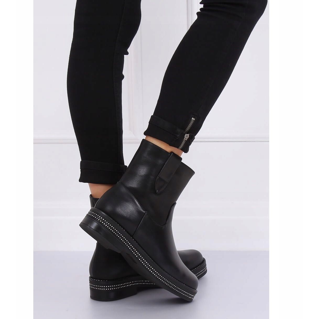 Inna marka Schwarze flache schwarze Damenstiefel CH1812-1 Schwarz