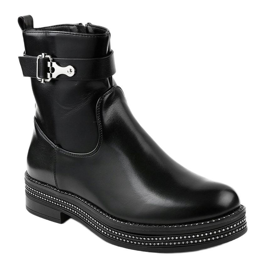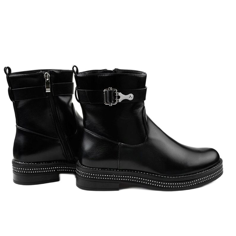 Schwarze flache Stiefeletten mit Diamanten C-68 sind die perfekte Wahl für Frauen, die sowohl Wert auf Stil als auch auf Komfort legen. Aus hochwertigem Faux-Wildleder gefertigt, begeistern diese Stiefeletten durch ihre elegante, klassische Optik und Funktionalität. Durch ihre schwarze Farbe passen sie perfekt zu einer Vielzahl von Stilen, von lässig bis formell.