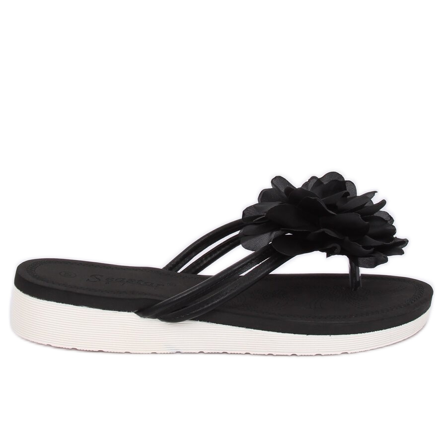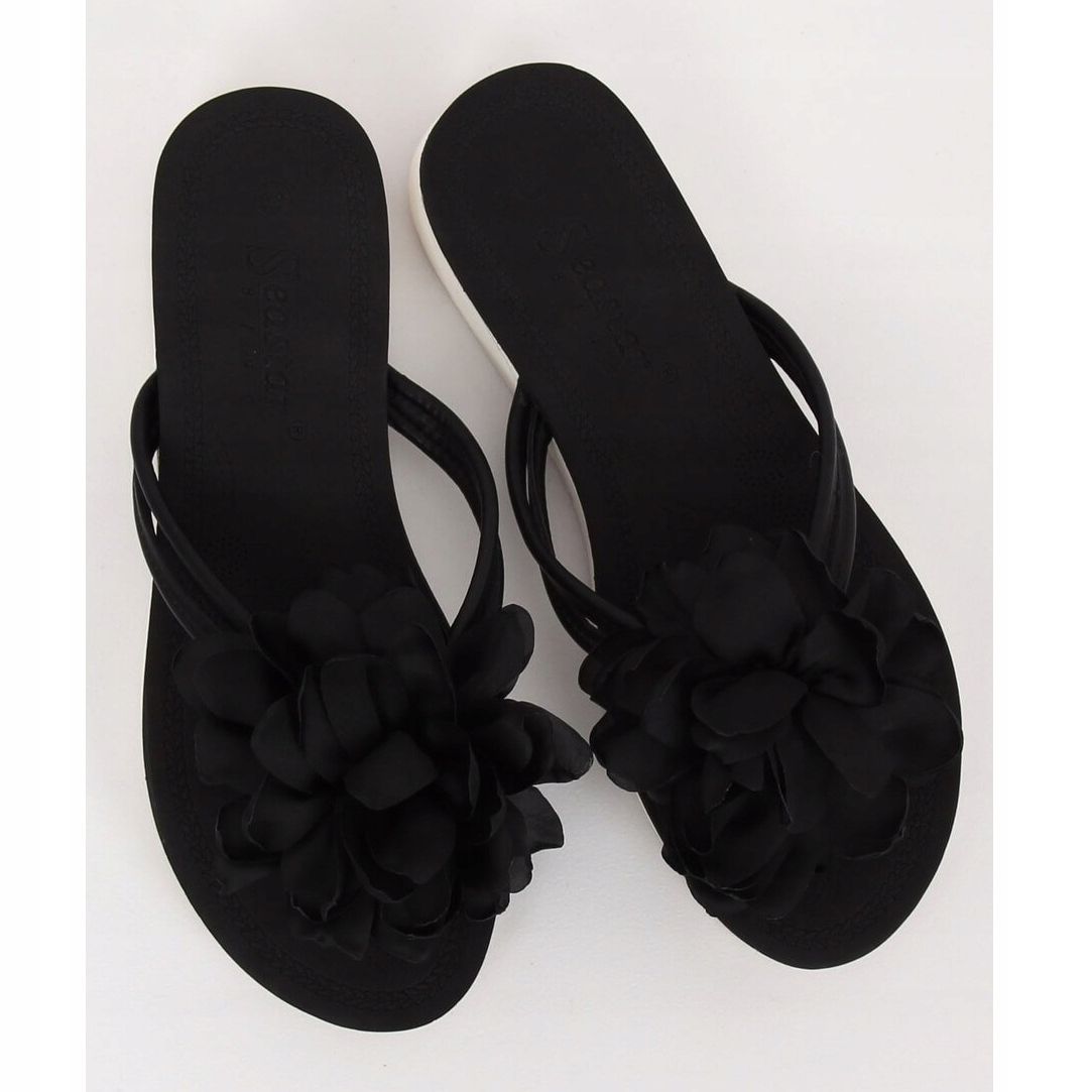 Inna marka Schwarze Flip-Flops mit Blume CK103 Schwarz