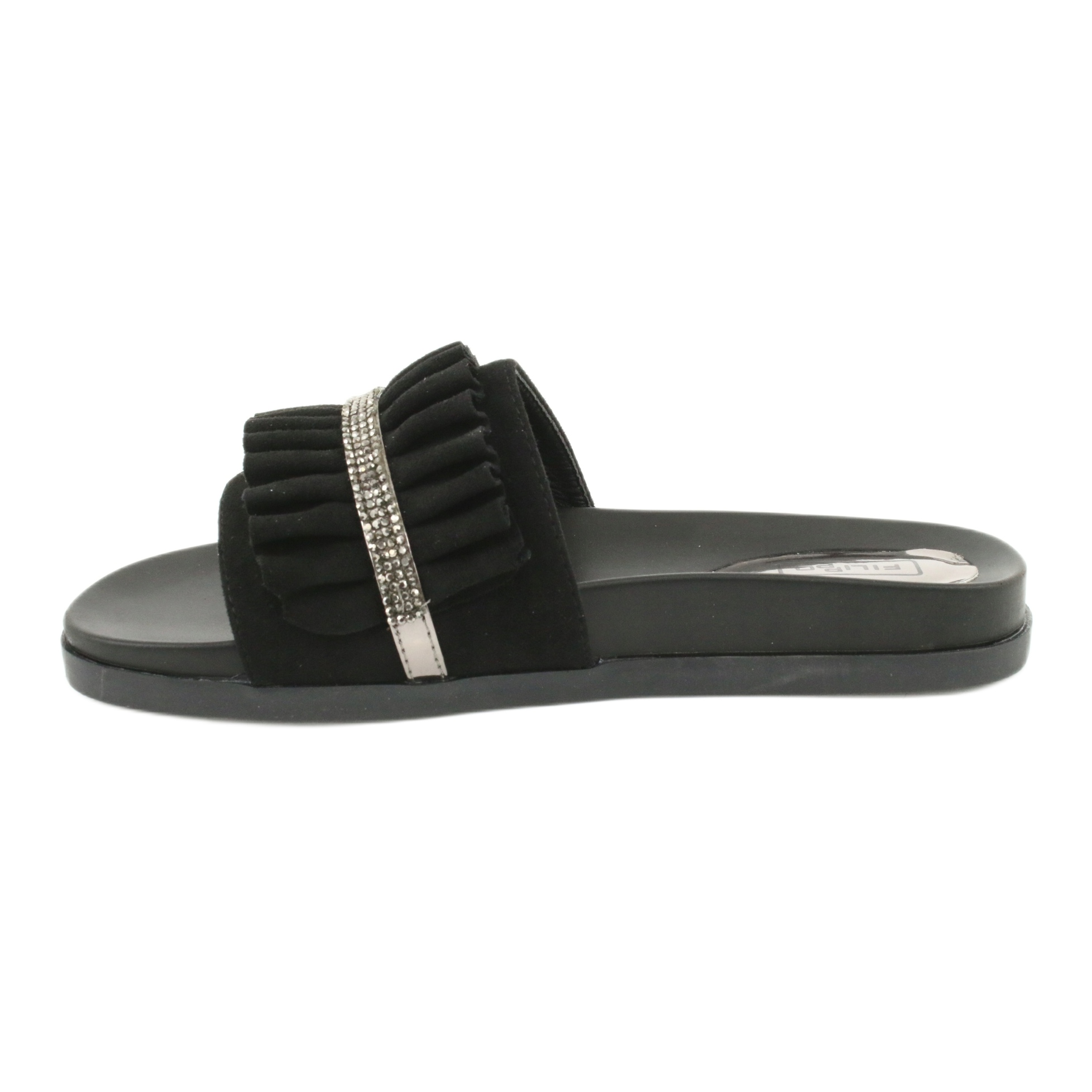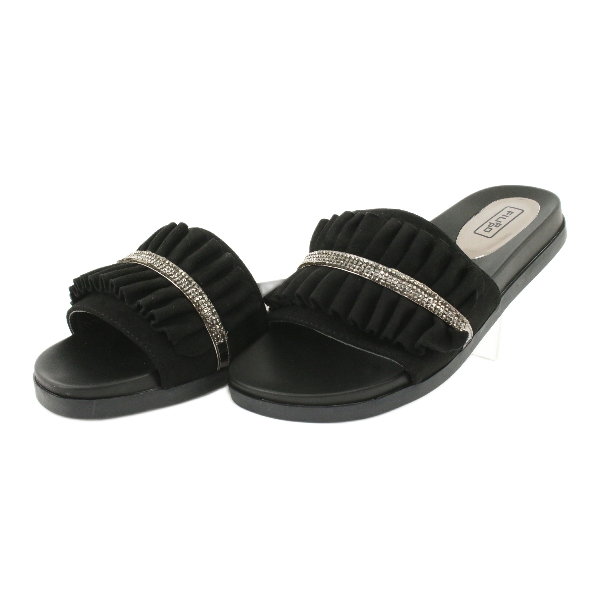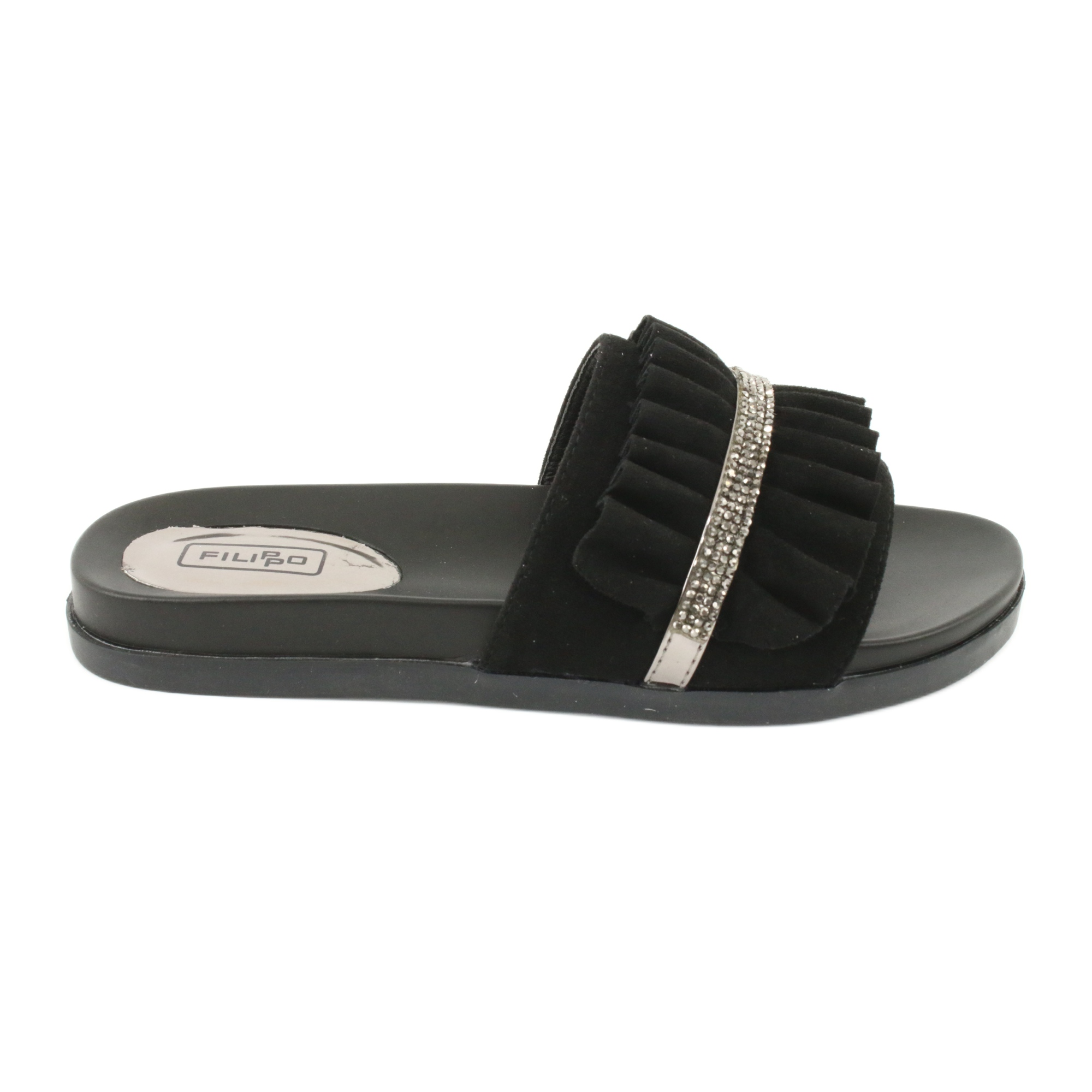 Filippo DK1241/20 Bk - Schwarze Frauenflip -Flops mit Rüschen und Zirkonen