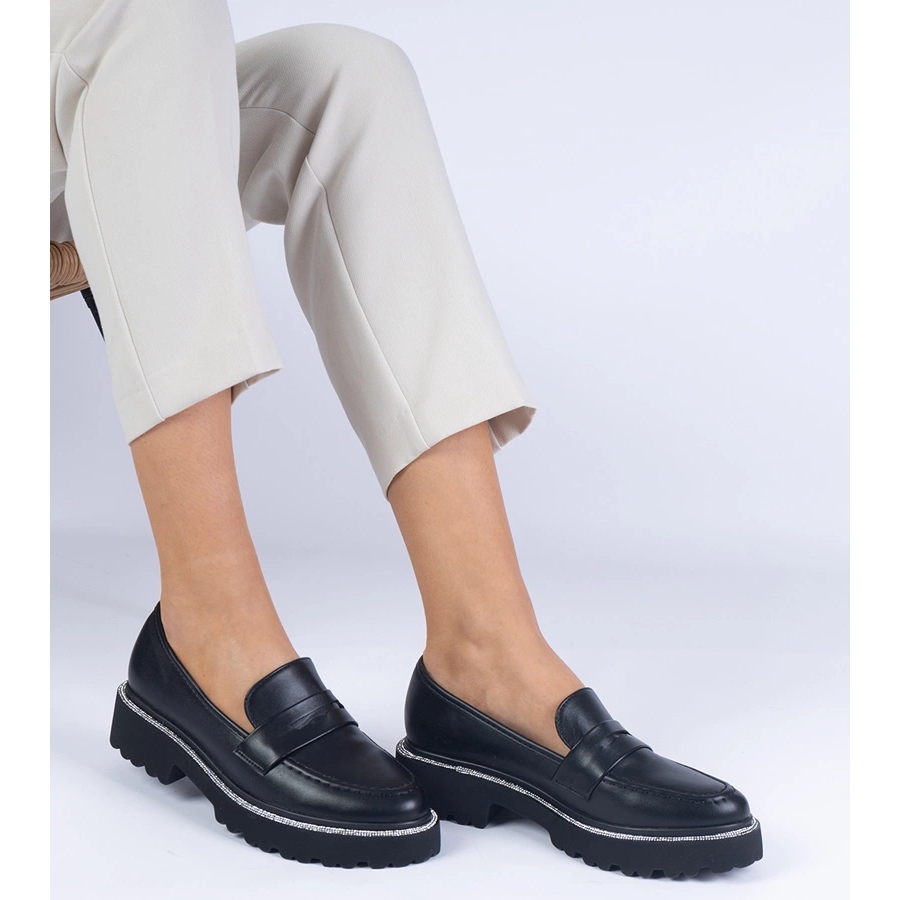 Entdecken Sie einen einzigartigen Stil und einen außergewöhnlichen Komfort mit den Mokassins für schwarze Frauen auf einem dicken Sohle N24-022-Modell. Diese eleganten Schuhe kombinieren modernes Design mit Komfort und passen perfekt zu aktuellen Modetrends.