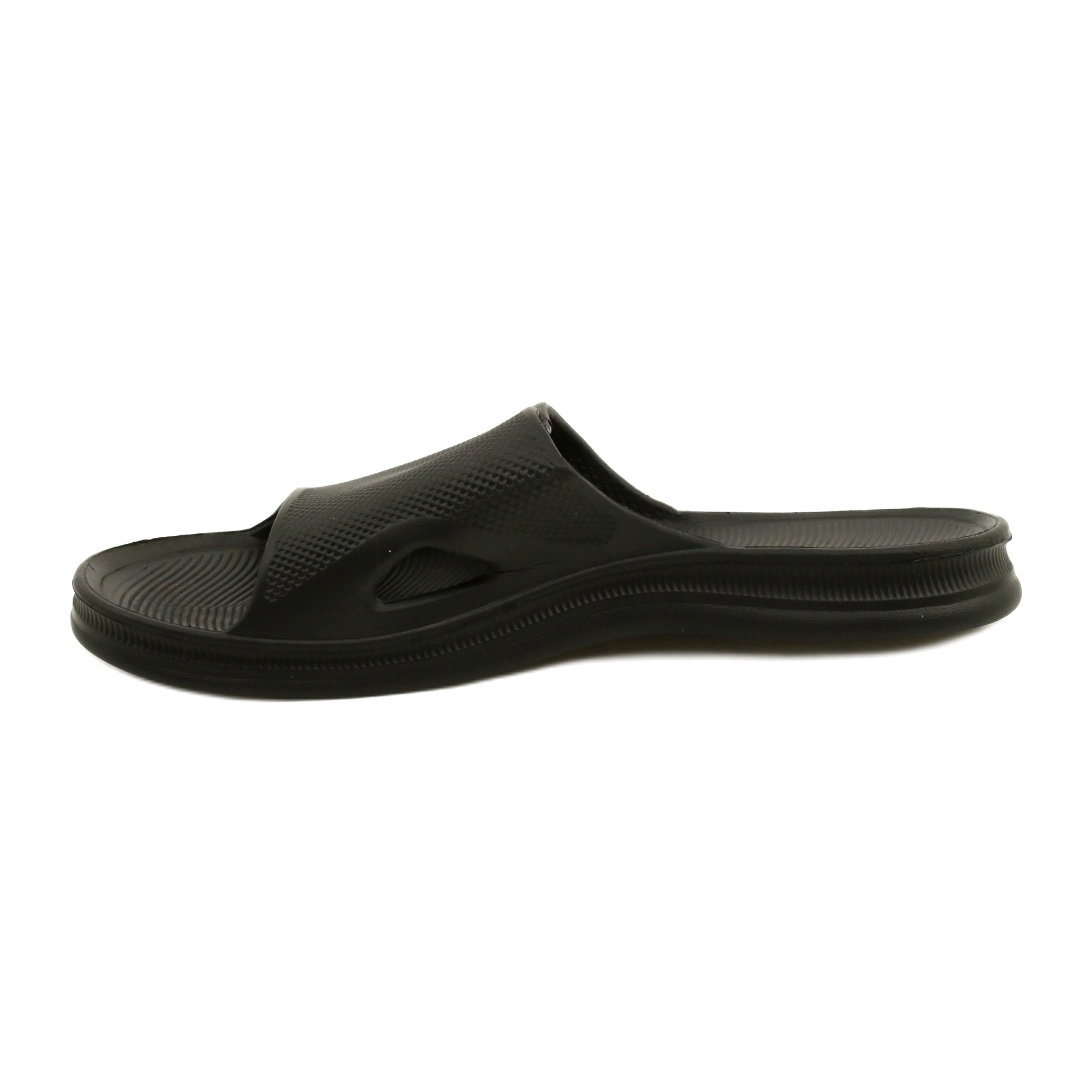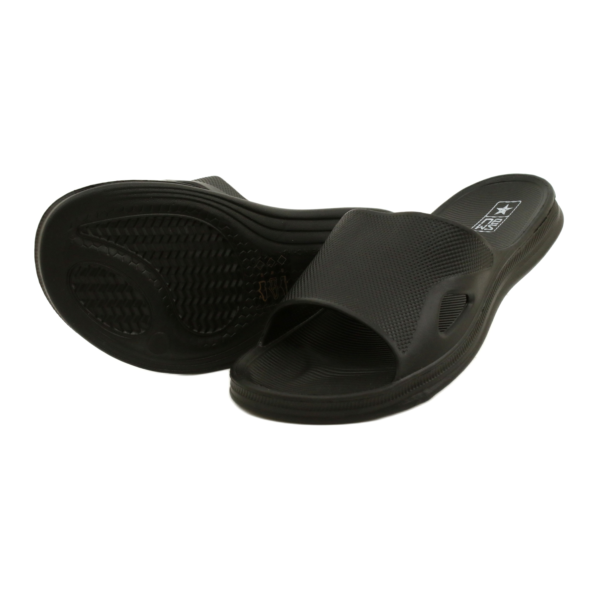 Klassische, bequeme Hausschuhe für Männer, die für Komfort und universelle Verwendung geschaffen wurden. Vollständig aus hochwertigem Gummi-Sand-Material mit einem profilierten Einsatz mit einem zarten Mustermassagemuster hergestellt. Leicht und angenehm zu tragen - perfekt für den Strand, Dusche, über dem Pool und für kürzere Spaziergänge nach draußen. Die Einfachheit des Schnitts und die eleganten schwarzen Farben erleichtern sie leicht zu den Sommerstilisationen. Perfekt für Ferien am Meer.