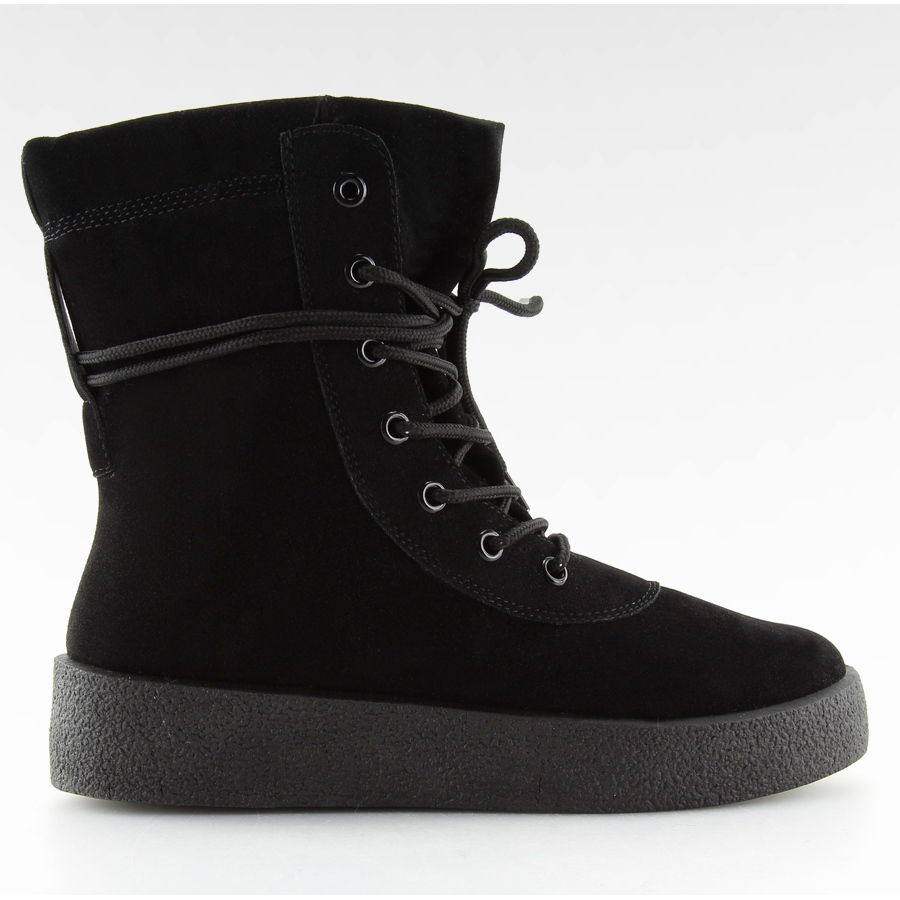 Klassische, schwarze Damenstiefelette mit sportlichem Charakter, perfekt für den Alltag. Komplett aus ökologischem Wildleder gefertigt, mit weichem Schaumstofffutter – sie sorgen auch bei niedrigeren Temperaturen für Wärme und Komfort. Eine solide, hohe Synthetiksohle isoliert effektiv vor Kälte und sorgt für Stabilität beim Gehen.
