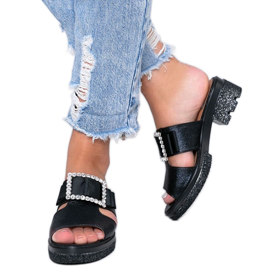 Inna marka Schwarze, glänzende Hausschuhe mit Lizzy-Schnalle