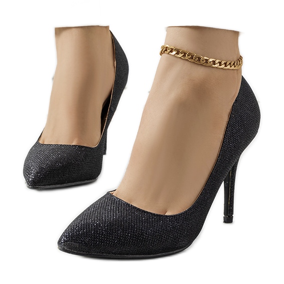 Schwarz glänzende High Heels von Macerra sind die perfekte Wahl für Frauen, die sich in jeder Situation einzigartig und feminin fühlen möchten. Diese eleganten Pumps zeichnen sich durch eine zarte Materialstruktur aus, die ihnen in Kombination mit dem spektakulären Glanz des Glitzers einen einzigartigen Charme verleiht. Ein schlanker Stiletto-, Zehen- und spitzer Zehenbereich betonen Ihre Figur perfekt und lassen Ihre Beine noch attraktiver aussehen.