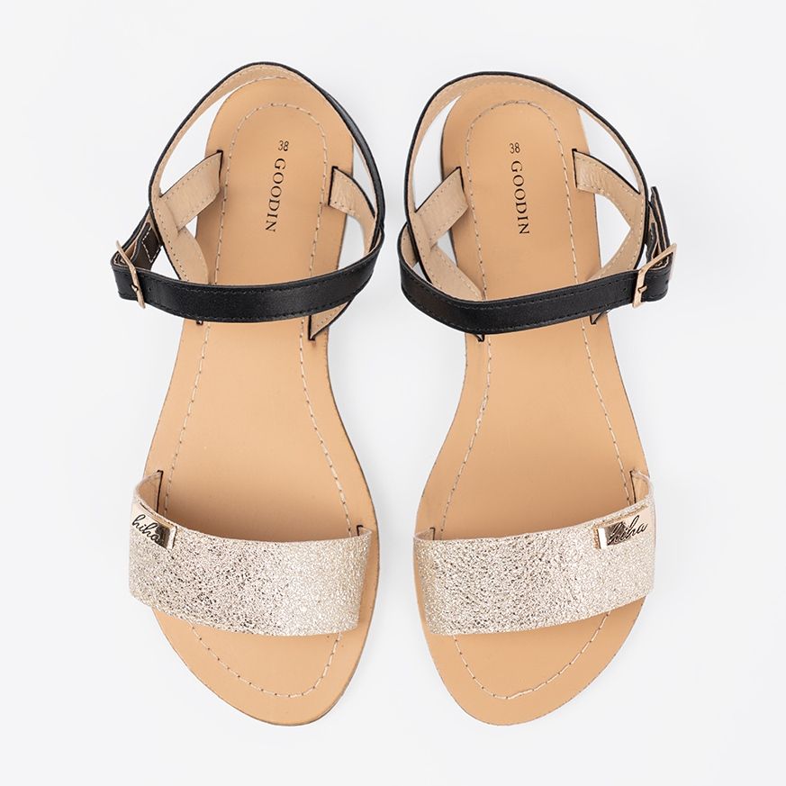 Wir präsentieren Ihnen schöne, schwarze und goldene Frauensandalen vom Hersteller Goodin, die perfekt für Sommertage sind. Dieses Modell zeichnet sich durch einen klassischen Schnitt und einen lässigen Stil aus, was es zu einer guten Wahl für tägliche Ausflüge macht.
