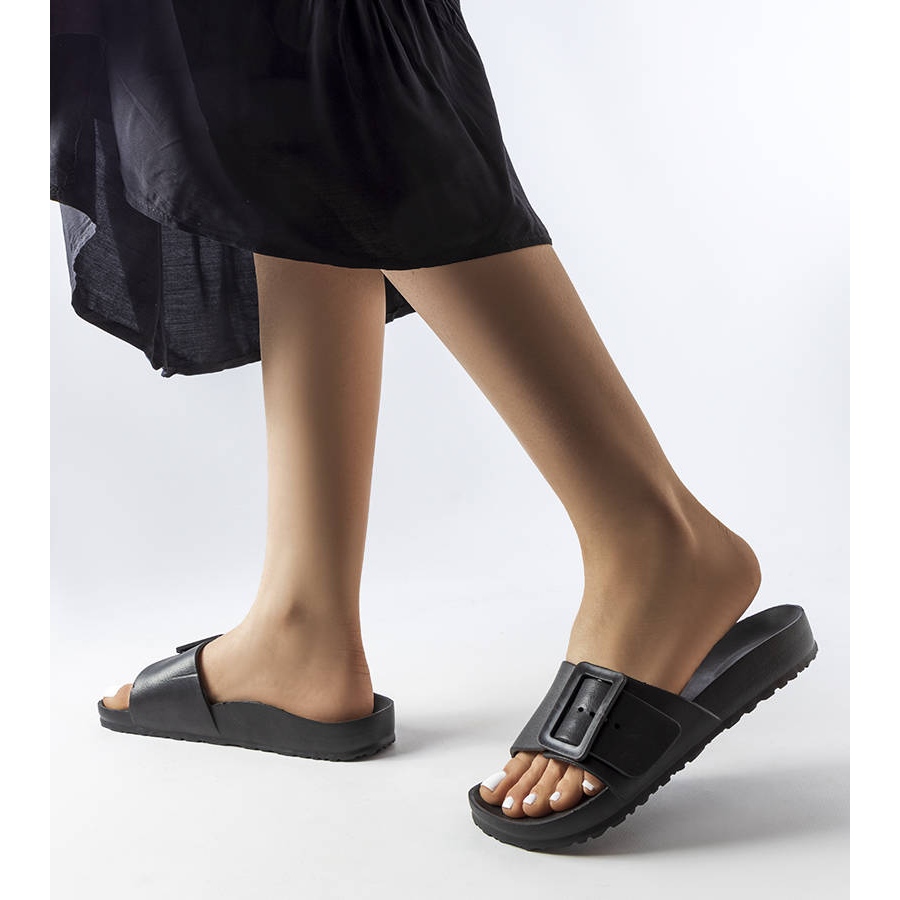 Details: Schwarze Gummi-Slider mit Schnalle von Nelm