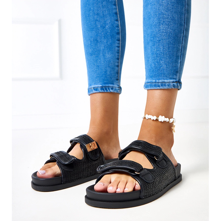 Entdecken Sie neue Möglichkeiten von Sommerstilisierungen mit schwarzem Häkelkliris. Diese einzigartigen Flip -Flops kombinieren außergewöhnliches Komfort und modisches Erscheinungsbild und passen jeden Tag perfekt in den lässigen Stil. Die verwendeten einstellbaren Träger ermöglichen eine optimale Anpassung, um Stabilität und Bequemlichkeit zu gewährleisten. Dank der 3 cm hohen Plattform erhalten Ihre Füße zusätzliche Unterstützung und gleichzeitig verlieren Sie nichts aus Eleganz.