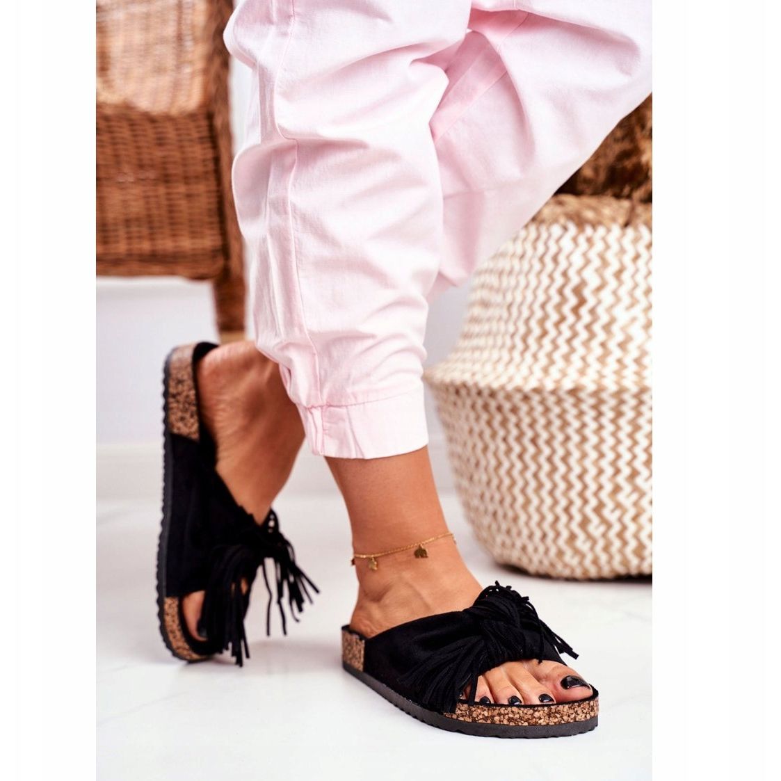 Die schwarze Farbversion ist ein Klassiker, der nie aus der Mode kommt. Ein zusätzlicher Vorteil sind schöne Verzierungen in Form einer gebundenen Schleife mit Fransen, die den zehenstegsandalen einen originellen und eleganten Charakter verleihen. Die Wahl der richtigen Größe ist einfach – wir empfehlen Ihnen, die typische Größe zu wählen, die Sie jeden Tag tragen.