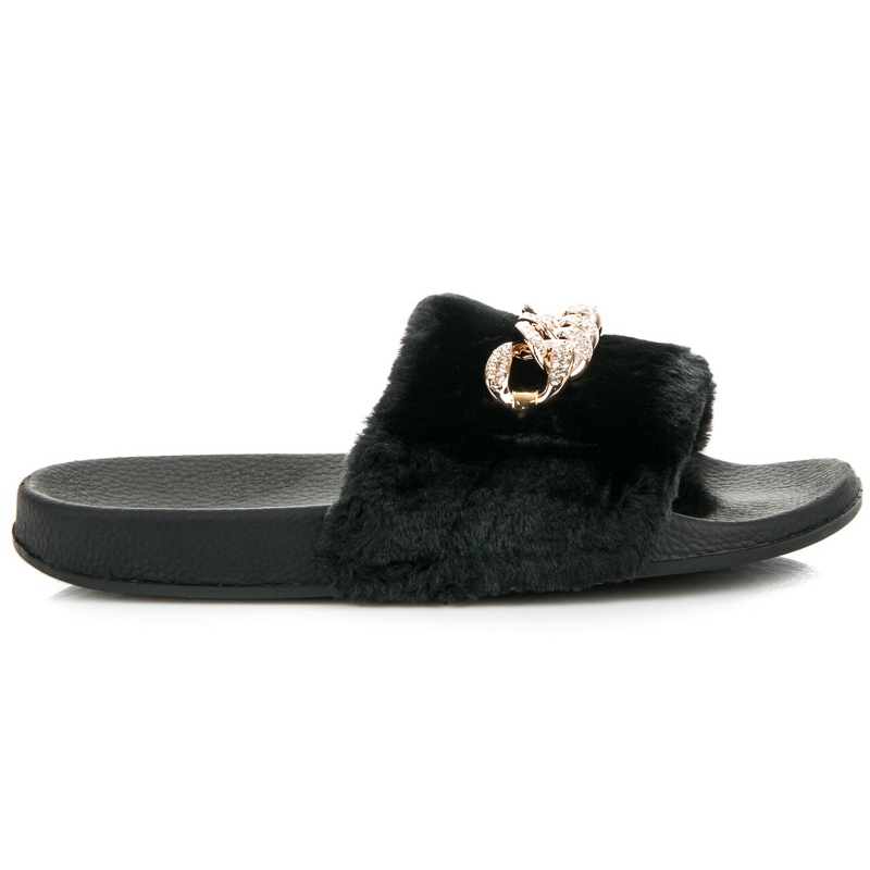 Details: Queen Vivi Schwarze Hausschuhe mit Fell
