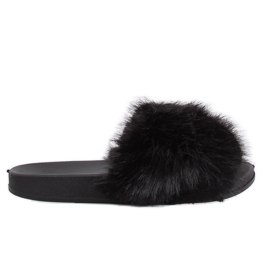 Inna marka Schwarz CK107P Schwarze Hausschuhe mit Fell
