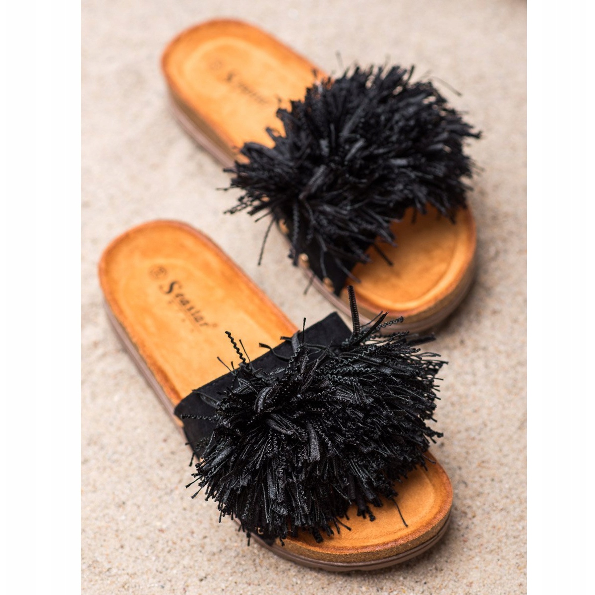 Seastar Seastar Schwarze Hausschuhe mit Fransen