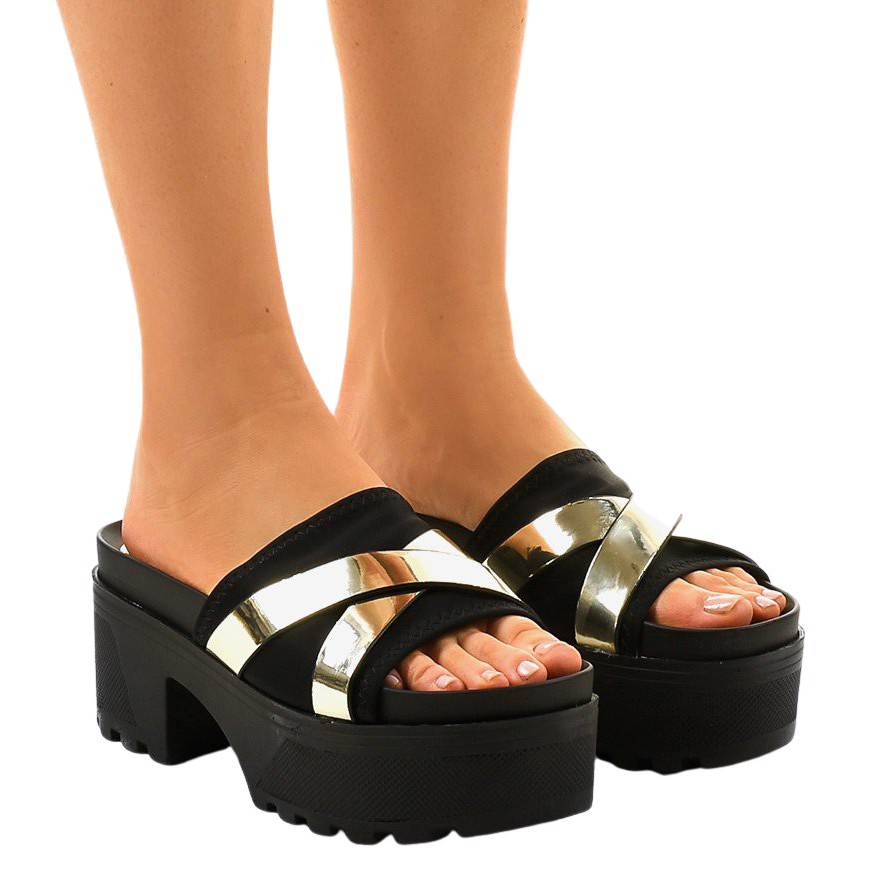 Details: Schwarze Hausschuhe mit hohen Absätzen CL-3A309-42 gelb