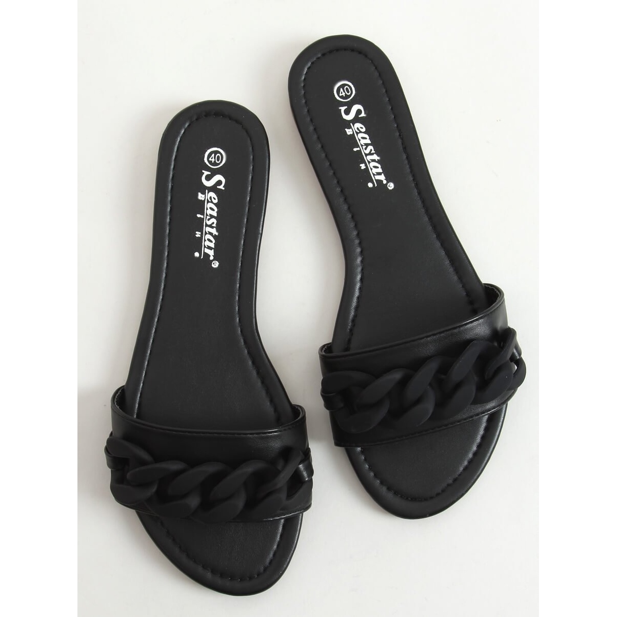 Inna marka Schwarze Hausschuhe mit Kette schwarz CK205P Schwarz
