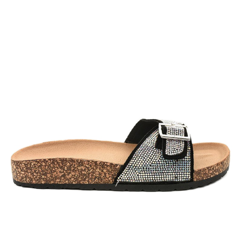 Details: Schwarze Hausschuhe mit Korksohle L-1032