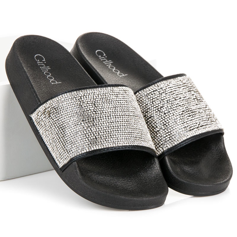 Details: Girlhood Schwarze Hausschuhe mit Kristallen