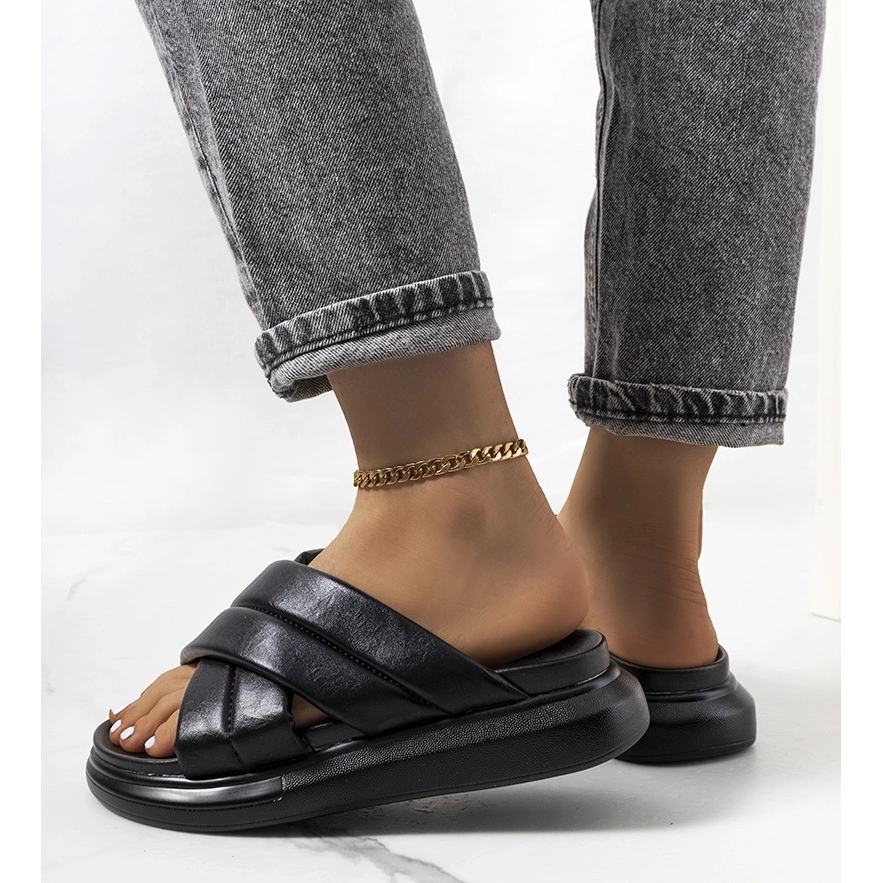 Inna marka Schwarze Hausschuhe mit Levy-Kette