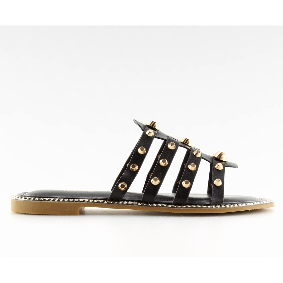 Inna marka Schwarze Hausschuhe mit Nieten 99-41 Schwarz