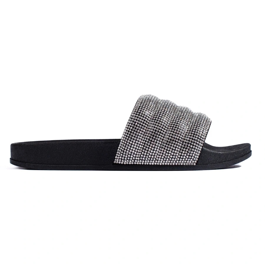 Schwarze Hausschuhe mit Shelovet-Strasssteinen
