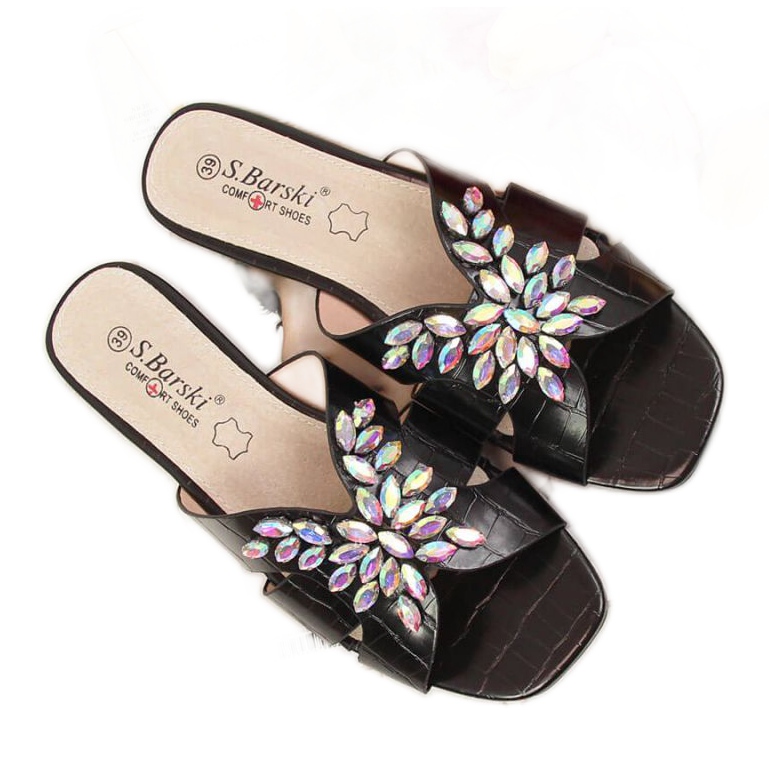Inna marka Schwarze Hausschuhe mit Steinen S. Bararski W OLI104