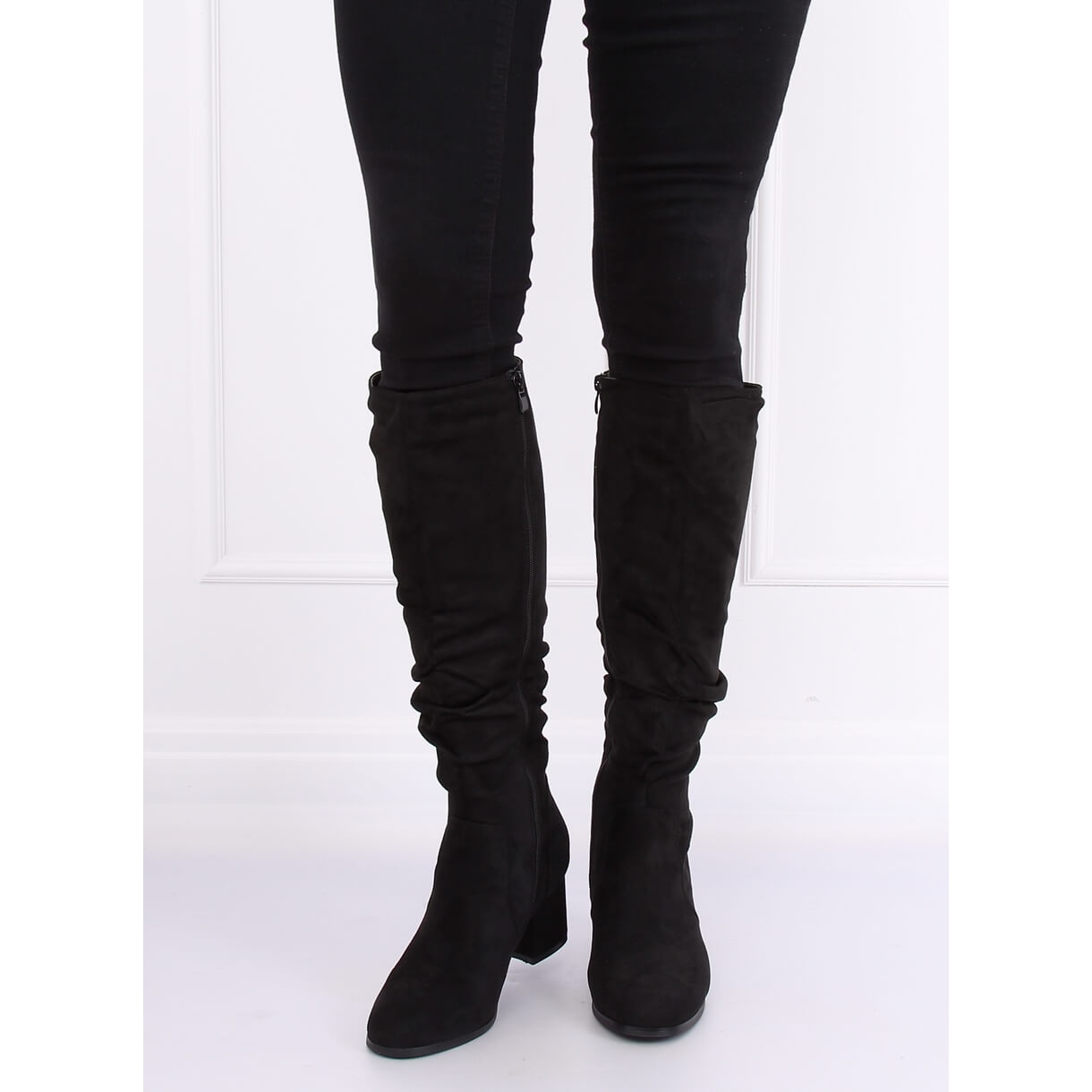 Wir präsentieren die eleganten 280 Black-Stiefel mit hohen Absätzen, die jede Frau ansprechen werden, die Wert auf Stil und Komfort legt. Diese aus hochwertigem Öko-Wildleder gefertigten Stiefel vereinen modernes Design mit klassischem Schnitt. Das interessant geknitterte Obermaterial verleiht ihnen einen einzigartigen Charakter und macht sie zu einer idealen Wahl für viele Alltagsstile.
