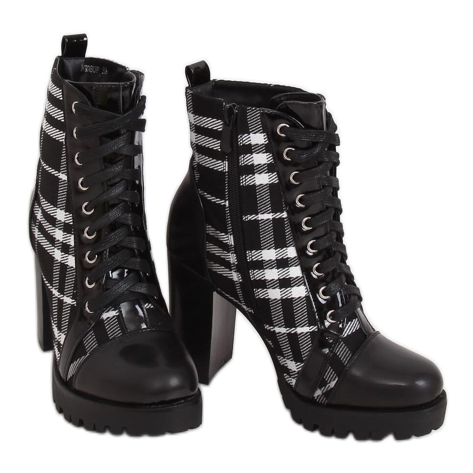 Wir präsentieren einzigartige schwarz karierte Stiefeletten mit hohem Absatz NS080P Black – eine ausgezeichnete Wahl für Frauen, die sowohl Wert auf Eleganz als auch auf Komfort legen. Diese stylischen Stiefel haben einen 9,5 cm hohen Absatz und ein 2 cm hohes Plateau, was ihnen einen modischen Charakter verleiht und gleichzeitig für Tragekomfort sorgt.