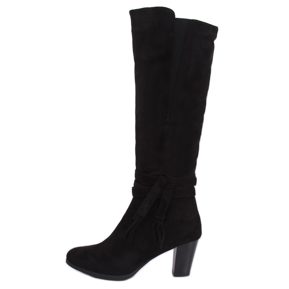 Schwarze Stiefel mit hohen Absätzen VQ-307 Black sind die perfekte Wahl für Frauen, die Wert auf Eleganz und Komfort im Alltagsstil legen. Aus hochwertigem ökologischem Wildleder gefertigt, begeistern diese klassischen Stiefel durch ihr schlichtes, aber wirkungsvolles Design. Ein stabiler 7 cm hoher Absatz schmälert die Figur perfekt und verleiht ihr Leichtigkeit und Anmut.