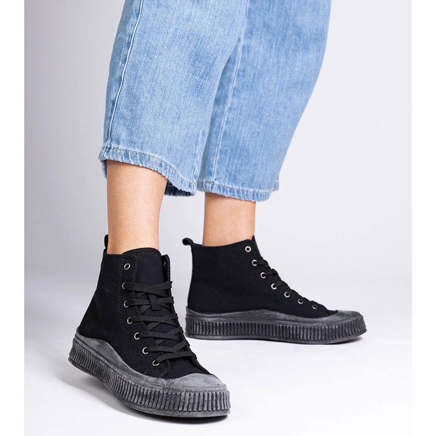 - Modell: RE21P Schwarze High-Plateau-Sneaker