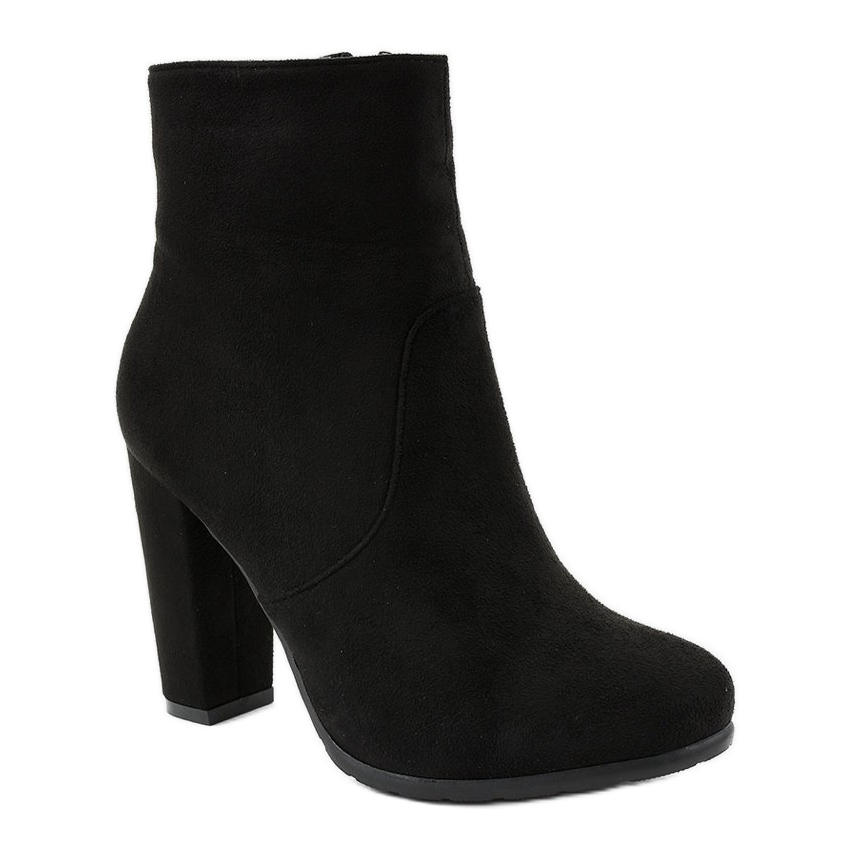 Wir präsentieren die schwarzen Stiefeletten F912 mit hohem Absatz, die eine ausgezeichnete Wahl für Frauen sind, die Wert auf Eleganz und Komfort legen. Aus hochwertigem ökologischem Wildleder gefertigt, passen diese stylischen Stiefeletten perfekt zu aktuellen Trends und verleihen jedem Styling einen einzigartigen Charakter.