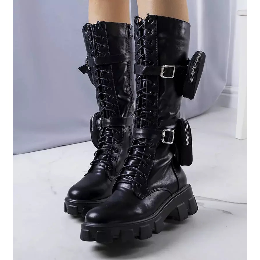 Inna marka Schwarze hohe Stiefel mit einer Kette von Nererin