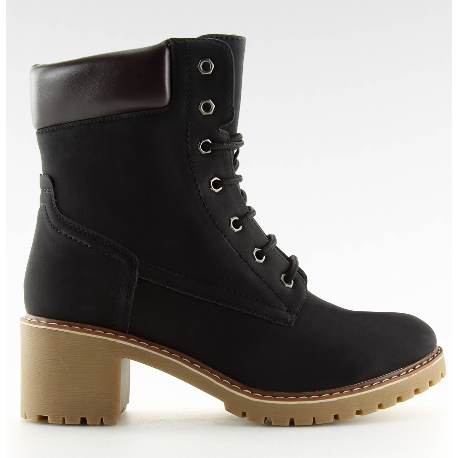 Inna marka Schwarze Holzstiefel mit Absatz 7-9028