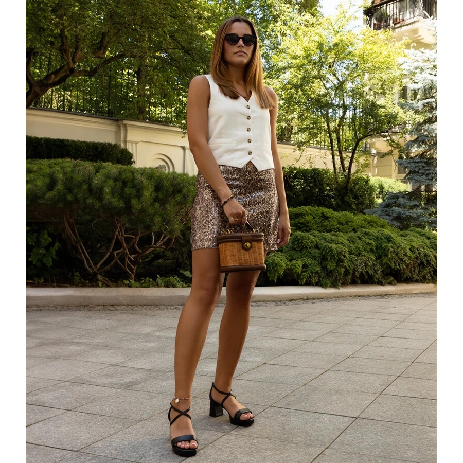 Diese Sandalen zeichnen sich dank einer praktischen Schnalle durch Funktionen aus, die es Ihnen ermöglicht, perfekt zum Fuß zu passen, was für die Aufrechterhaltung des Komforts bei langen Sommerspaziergängen wichtig ist. Die Fersenhöhe von 7,5 cm verleiht der Figur Leichtigkeit, und gleichzeitig ist stabil genug, um die Bewegungsfreiheit genießen zu können.