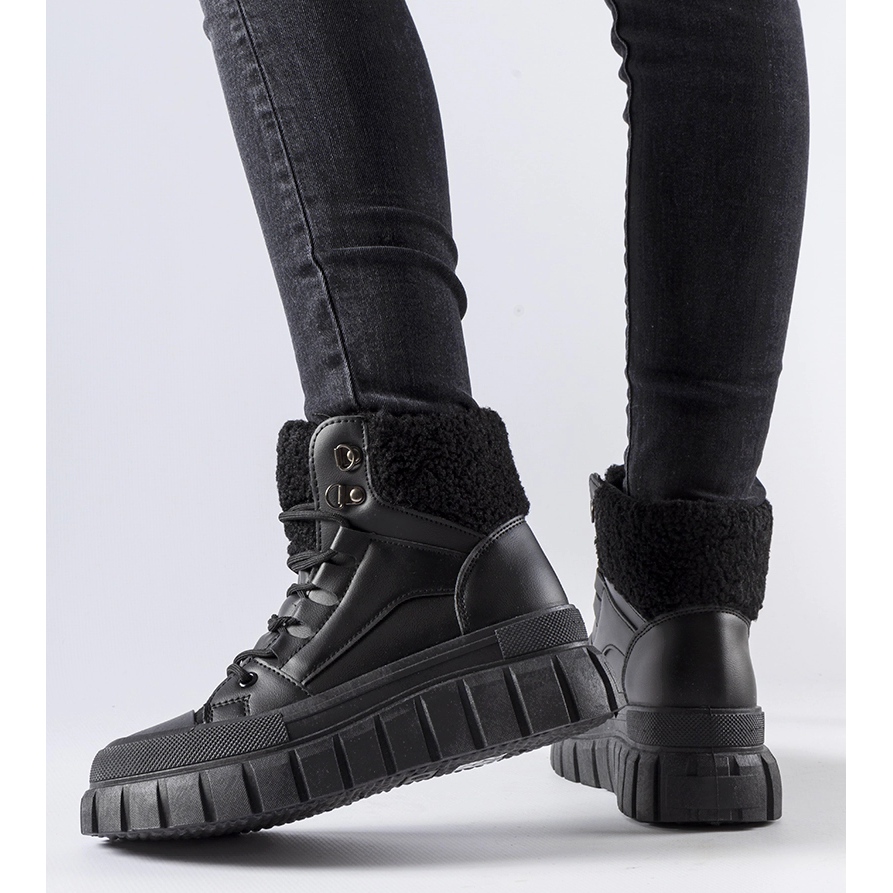 Turnschuhe haben ein modernes, hohes Design, das ihnen Charakter verleiht und sie als Alternative zu traditionellen Winterstiefeln gut aussehen lässt. Sie mit Gummischsohlen gelassen, bieten sie eine hervorragende Haftung, unabhängig von der Oberfläche, die Sie fortsetzen. Die durchschnittliche Ferse verleiht ihnen einen weiblichen Charme, während sie im täglichen Gebrauch Komfort bieten.