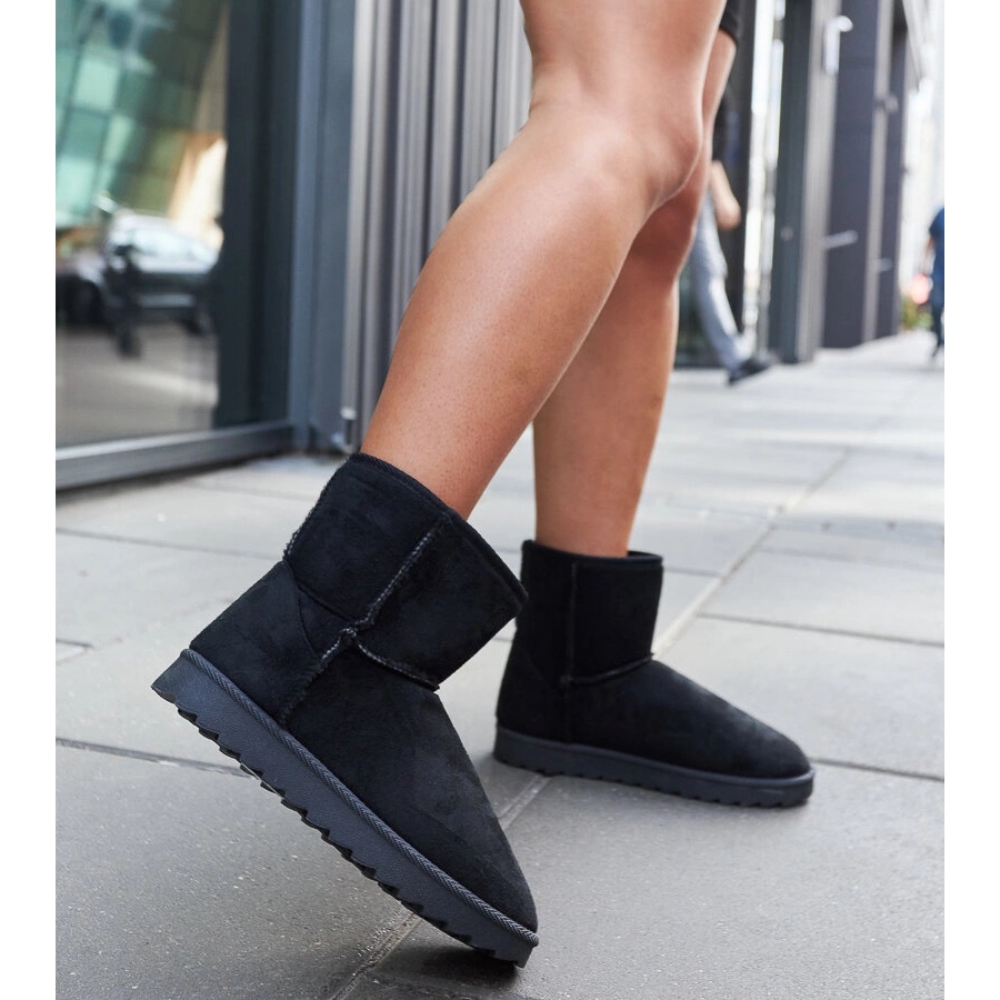 Moderne, komfortable und funktional-diese schwarzen Schneestiefel sind an kalten Tagen ein Muss. Sie bestehen aus ökologischem Leder aus Wildleder, wärmendem und weichem Fell im Inneren und bieten thermischen Komfort während Winterspaziergängen und täglichen Aktivitäten. Eine Gummi, modische Sohle und 3 -cm -Plattform verleihen Stabilität und urbaner Charakter, und die Schiebetruktur macht die Schuhe leicht anziehen.