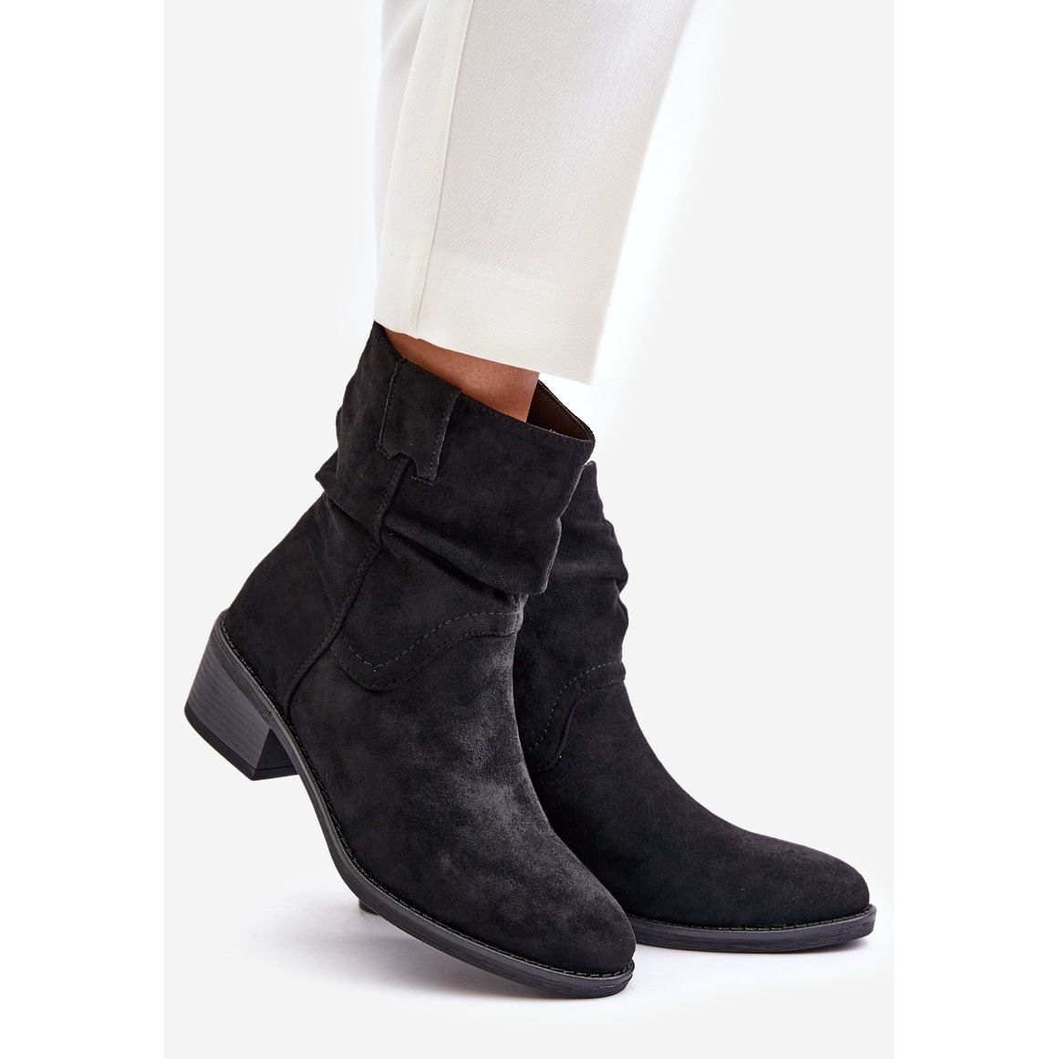 Details: Schwarze, isolierte Damen-Stiefeletten von Zinanya mit gerafftem Obermaterial und niedrigem Absatz