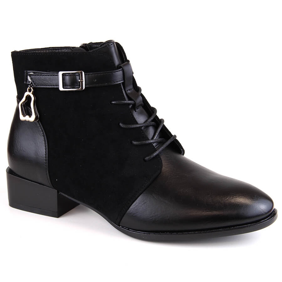 Frauenstiefel Potocki SZ12260 - Klassiker in der Winterausgabe. Stylische, schwarze Knöchelstiefel kombinieren Komfort und Funktionalität: Die Isolierung sorgt für kühlere Tage, und eine flache Ferse mit einer Höhe von 3 cm bietet Stabilität mit dem täglichen Gebrauch.