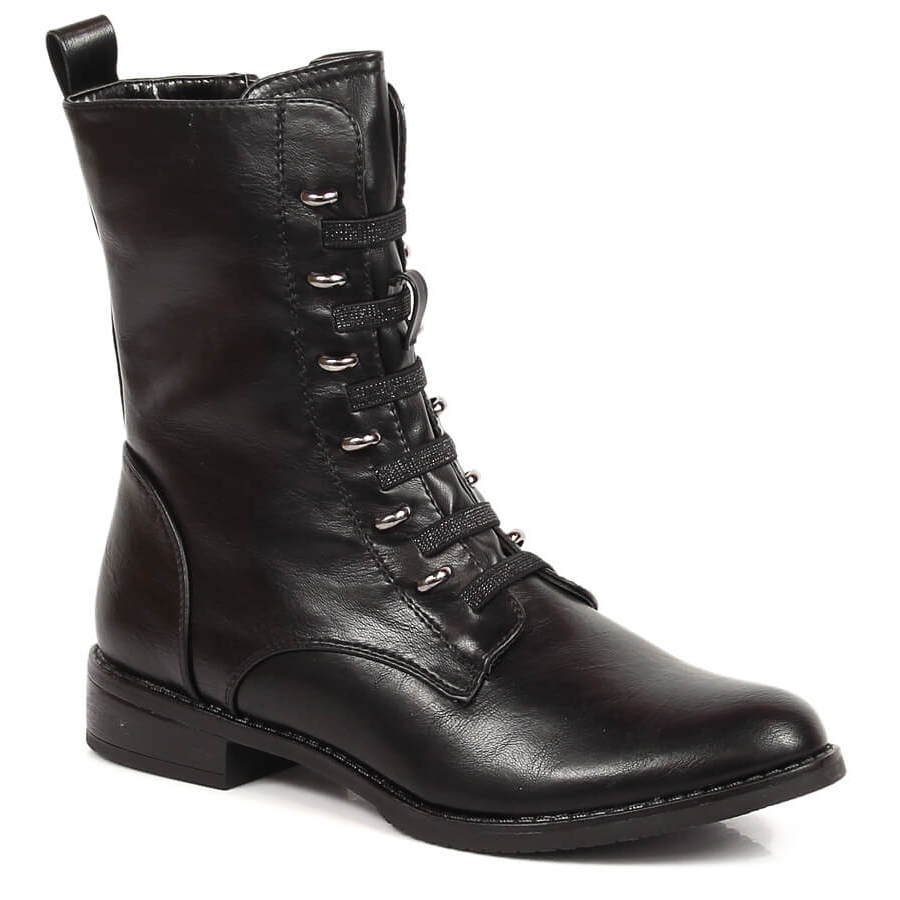 Die Stiefel verfügen über einen Reißverschluss und eine zusätzliche Schnürung, was das Anziehen und Anpassen an den Fuß erleichtert. Durch ihre klassische schwarze Farbe passen sie zu vielen Stilrichtungen, sowohl im Alltag als auch zu besonderen Anlässen.