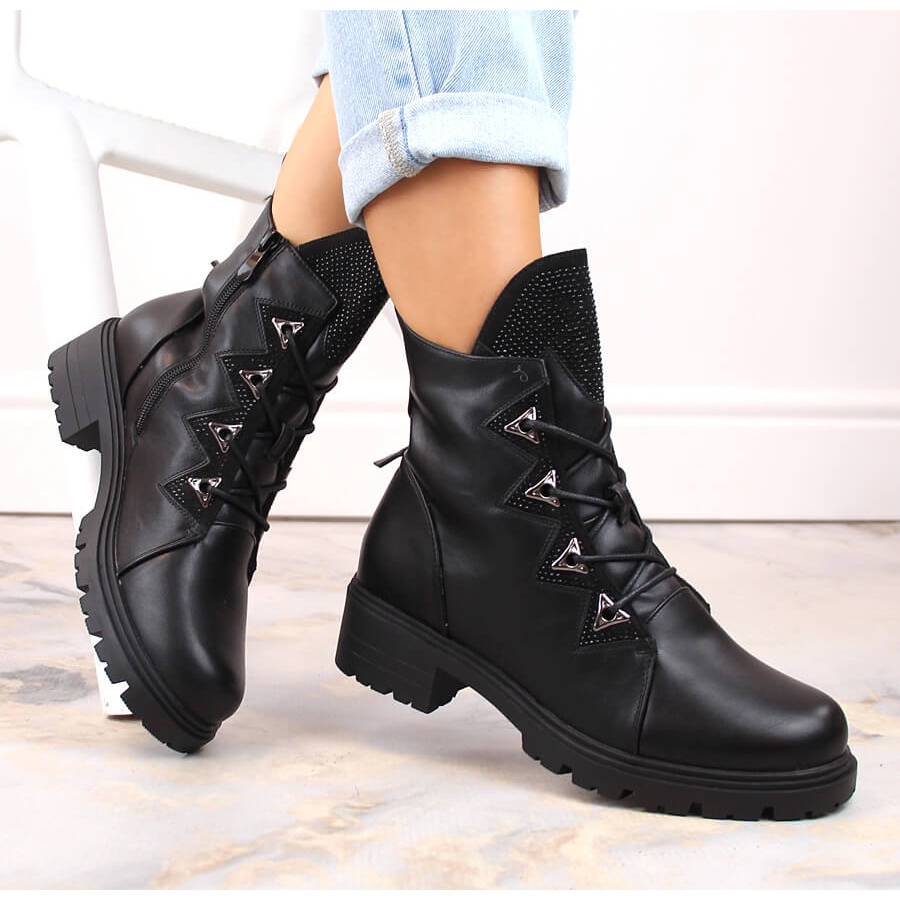 Details: Schwarze isolierte Damenstiefeletten mit Zirkonen S.Barski HY93-52A