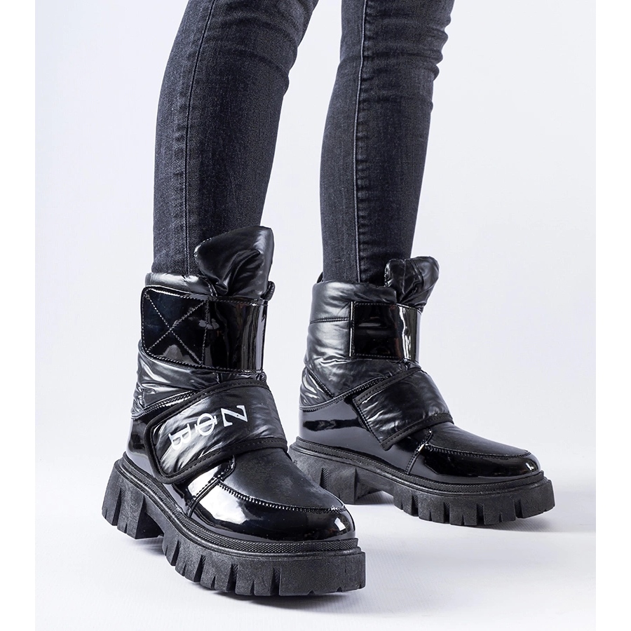 Stilvolle und funktionale Schneestiefel für Frauen, ideal für kühlere Tage. Klassische, schwarze Farben und lackierte Akzente verleihen ihnen Eleganz, und Isolierung sorgt selbst bei niedrigen Temperaturen thermischer Komfort. Eine flache Gummi -Sohle garantiert Haft und Haltbarkeit.